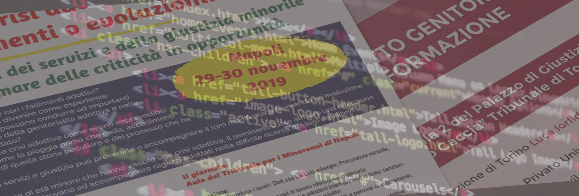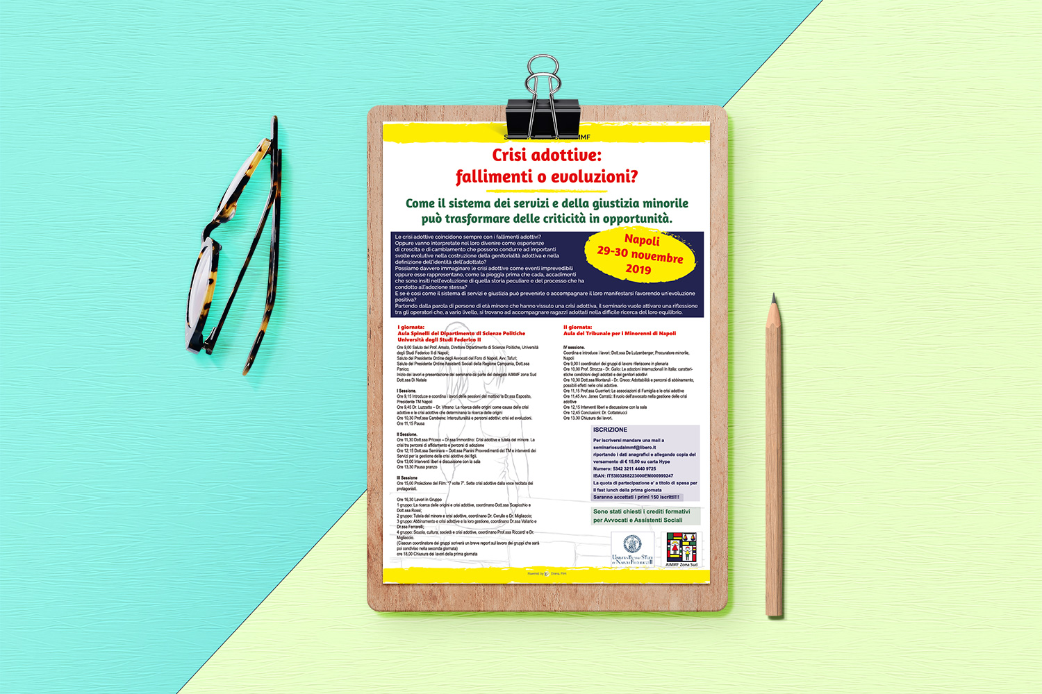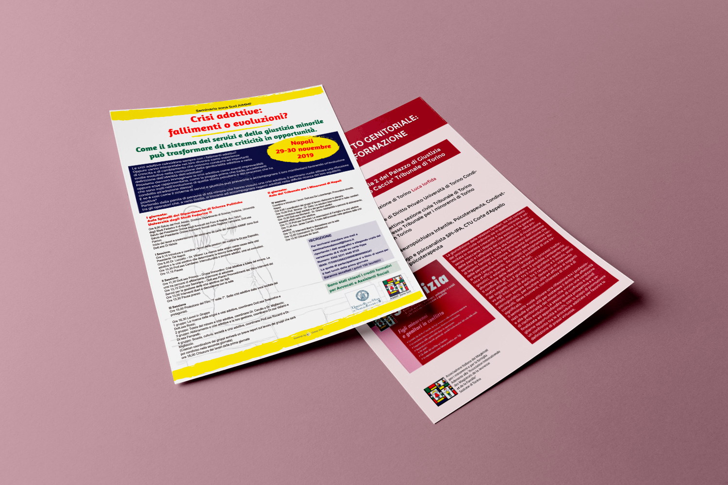 I created the posters for two events of the Italian Association of Magistrates for Minors and Families with the titles: "Adoptive crisis: failures or evolutions?" and "Children in parental conflict: protection and transformation".